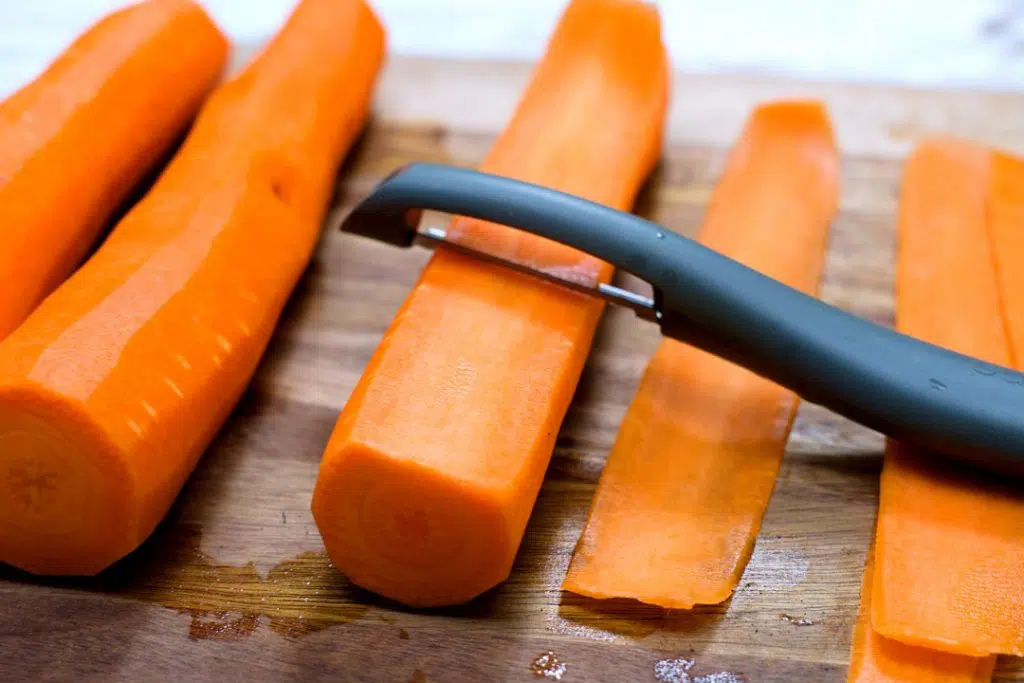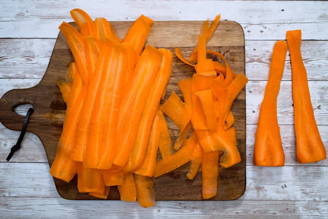 - Peel the carrots into thin wide slices of 0,5-1mm.