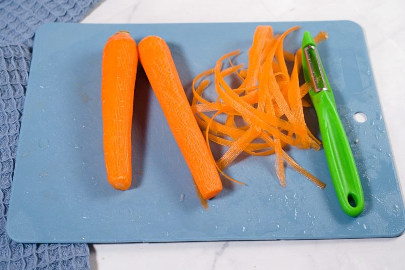 - Peel the carrots, rinse, and use a vegetable peeler to make thin ribbons.