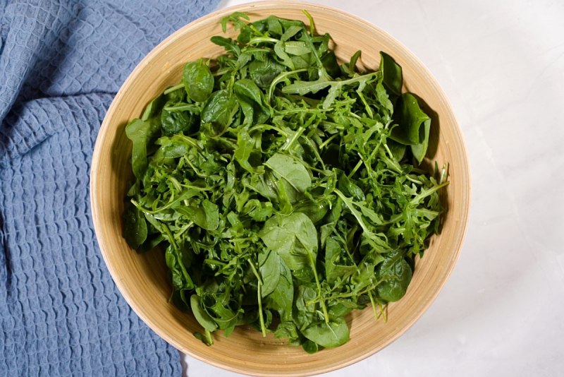 - Rinse and spin-dry or pat the salad leaves dry if they are not pre-washed in bags.